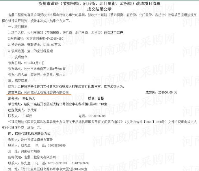 2019開年喜訊!河南誠安中標汝州市道路(節(jié)婦祠街、府后街、北門里街、孟拐街)改造項目監(jiān)理