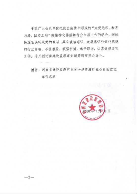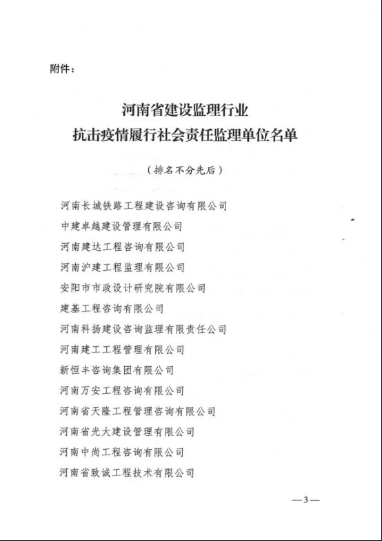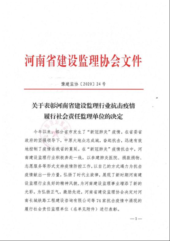關(guān)于表彰河南省建設(shè)監(jiān)理行業(yè)抗擊疫情履行社會(huì)責(zé)任監(jiān)理單位的決定